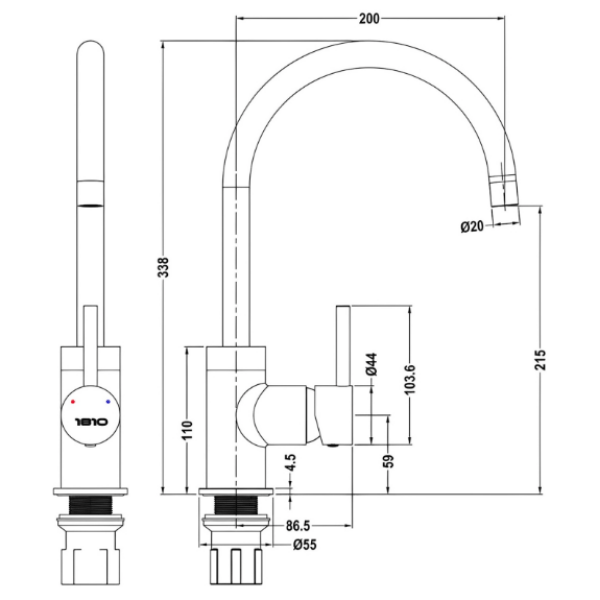 The 1810 COURBE Curved Spout Kitchen Tap – Gunmetal (COU/05/GM)
